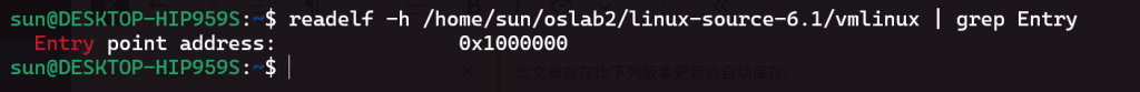 readelf -h /home/sun/oslab2/linux-source-6.1/vmlinux | grep Entry