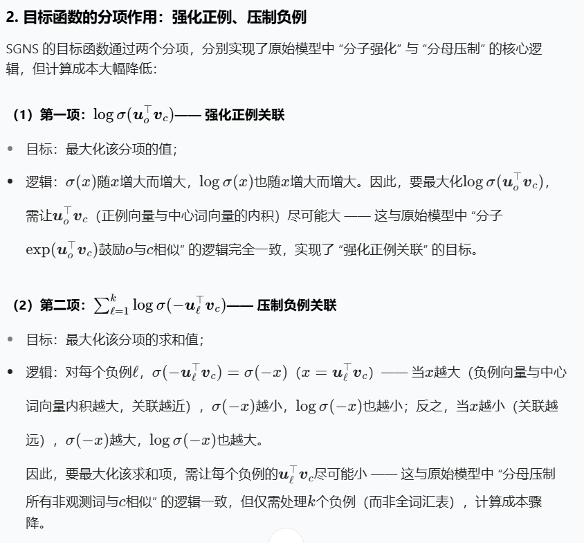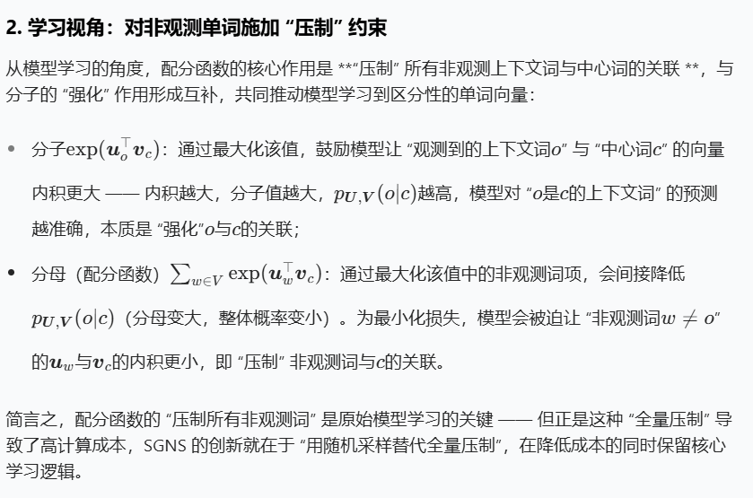 SGNS 的创新就在于 “用随机采样替代全量压制”,在降低成本的同时保留核心学习逻辑。